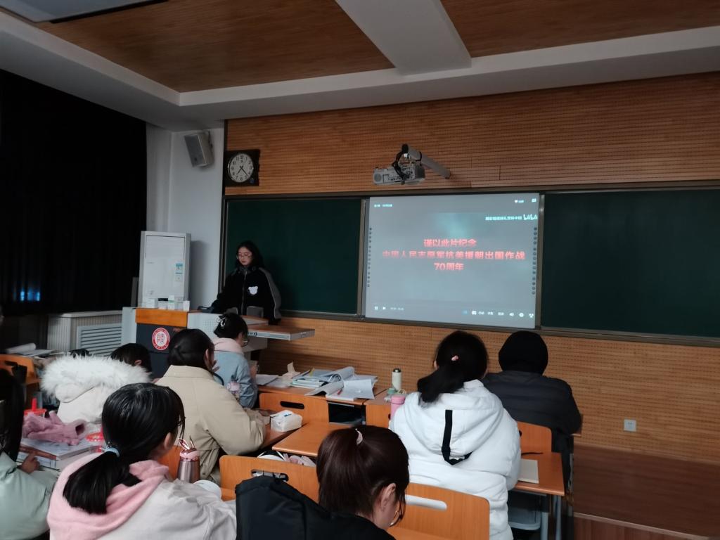 我院多层次、全方位开展本次观影活动。在班级层面,各班级采用主题团日活动的形式,将《为了和平》影片观看与“四史”学习教育紧密结合,分别就其中的《正义担当》、《生死较量》、《血性迸发》进行集中观看,并通过“四史”主题微党课、“抗美援朝”知识竞赛、观后感分享等多样化的形式深化“四史”学习,巩固前期学习效果。在学生会层面,马列理论学习中心组织学生会骨干集中观看第四集《英雄赞歌》,同时以抗美援朝这一历史为切入点进行“四史”专题集中学习研讨。集中学习后,由学生骨干带动普通同学,在寝室掀起了观看《为了和平》大型纪录片,致敬抗美援朝英雄的热潮。同学们深受教育和精神的洗礼,纷纷表示应该致敬那些最可爱最可敬的英雄烈士,弘扬他们所表现出的革命精神。作为生活在和平年代的后辈,我们更应该珍惜这来之不易的和平生活,努力学习理论知识、增强实践能力,不负青春韶华。