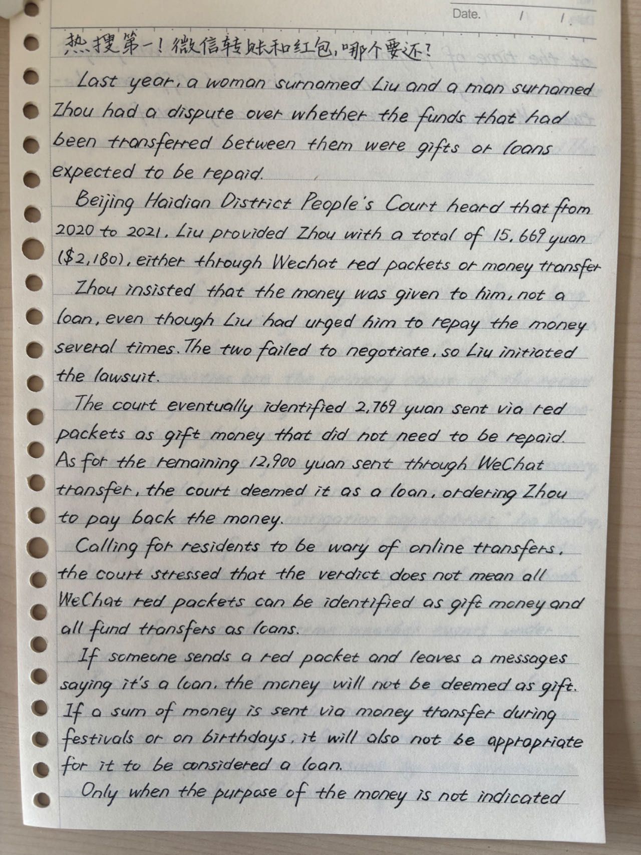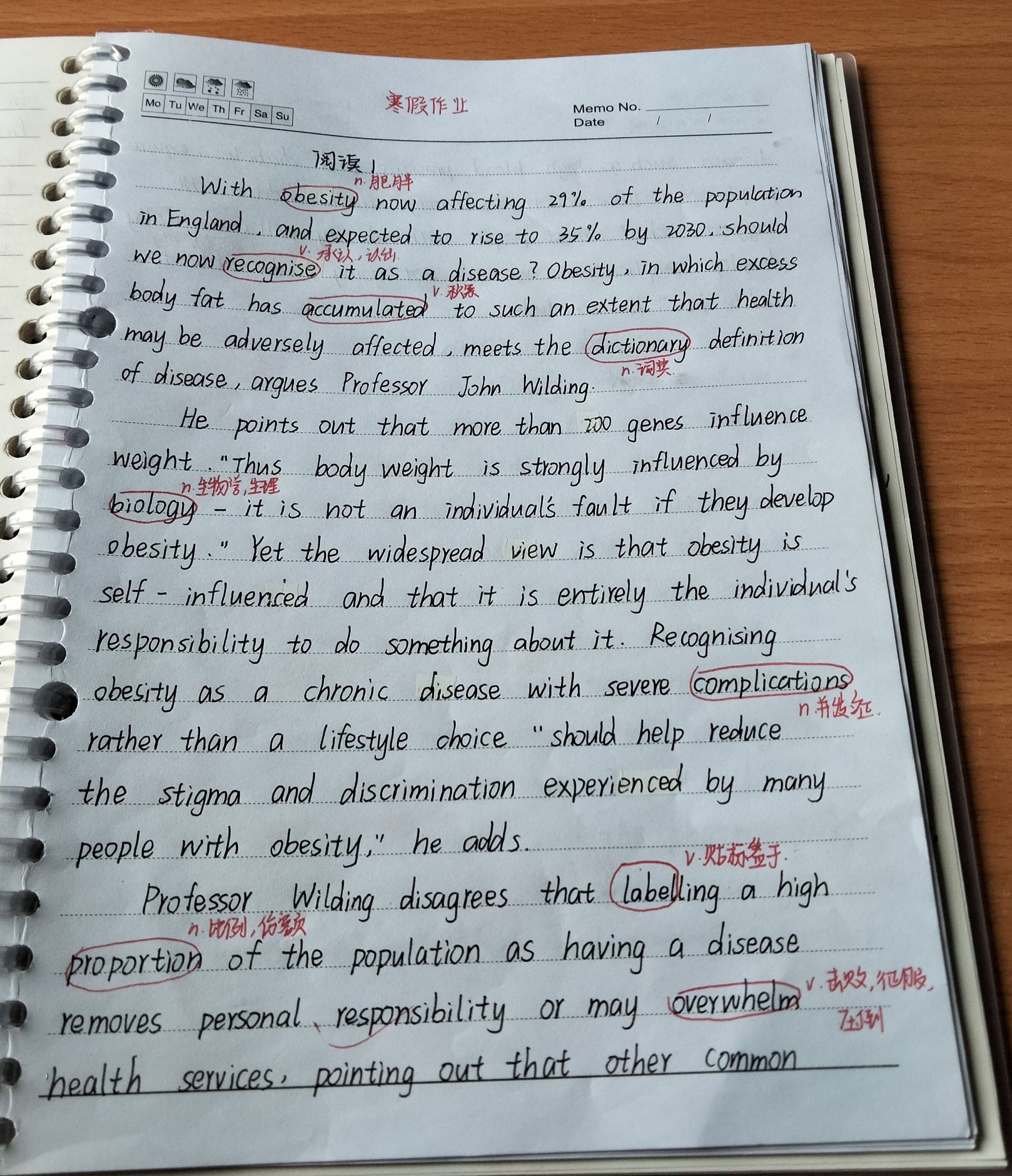 为了丰富同学们的寒假生活,特安排语文、数学、英语三门课的寒假作业,各科任课老师根据同学们完成情况以班为单位评选出一等奖1名,二等奖2名,三等奖3名,后附获奖名单及一等奖笔记。